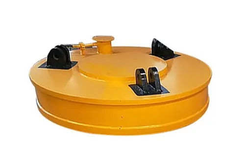 電磁吸盤通電時產(chǎn)生的電磁吸力可以吸附各種鐵磁性礦石、廢鐵廢鋼、鋼軌、鋼錠等物料停止運輸,無需事先安裝在起重機的料斗或包裝箱、包裝袋內(nèi),省時省力。